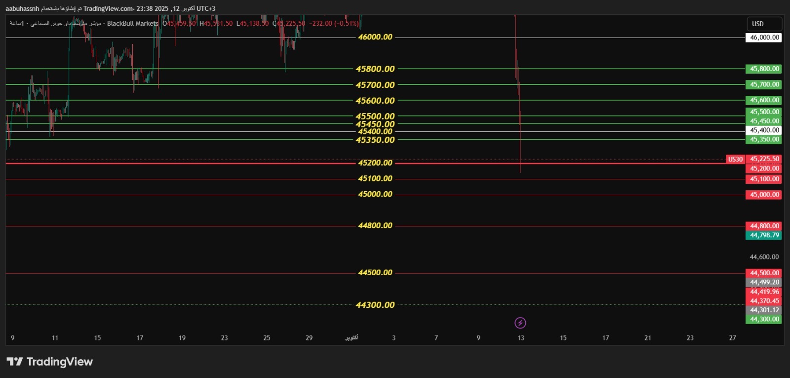 النظرة العامة: الاتجاه العام لمؤشر الداو جونز ما زال صاعدًا مدعومًا بتفاؤل المستثمرين واستقرار الأسواق الأمريكية.السعر حاليًا يقترب من منطقة حاسمة ستحدد استمرار الصعود أو بداية تصحيح مؤقت. سيناريو الصعود: الشرط: اختراق مستوى 45350 مع إعادة اختبار ناجحة. إشارة الدخول: بعد الإغلاق فوق 45350 وارتداد السعر منها كمنطقة دعم جديدة. الأهداف (كل 100 نقطة):🔹 45450🔹 […]