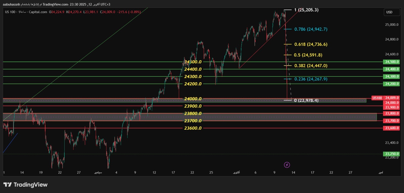 النظرة العامة: الاتجاه العام ما زال صاعدًا، مدعومًا بالزخم الإيجابي من تحسّن شهية المخاطرة في الأسواق العالمية.المؤشر يتحرك حاليًا ضمن نطاق فني مهم، حيث ننتظر اختراقًا مؤكّدًا لمستوى 24200 لتأكيد استمرار الصعود. سيناريو الصعود: الشرط: اختراق مستوى 24200 مع إعادة اختبار ناجحة. إشارة الدخول: بعد الإغلاق فوق 24200 والعودة لاختبارها كدعم. الأهداف (كل 100 […]