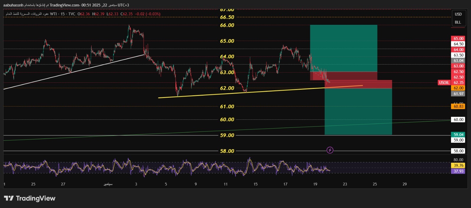 الاتجاه العامالنفط يتحرك في اتجاه هابط مدعوم بزيادة الإنتاج، بعد ارتداده من منطقة 70.00 التي أثبتت قوتها كمقاومة رئيسية. حاليًا يتداول في نطاق 62.00 – 63.00 بحالة من التذبذب العرضي. الدعوم 61.00: دعم محوري، كسره يعزز الهبوط نحو: 59.50 – 58.00: منطقة دعم قوية يُرجح ارتداد منها صعودًا. المقاومات 63.50: أول مقاومة، اختراقها يفتح […]