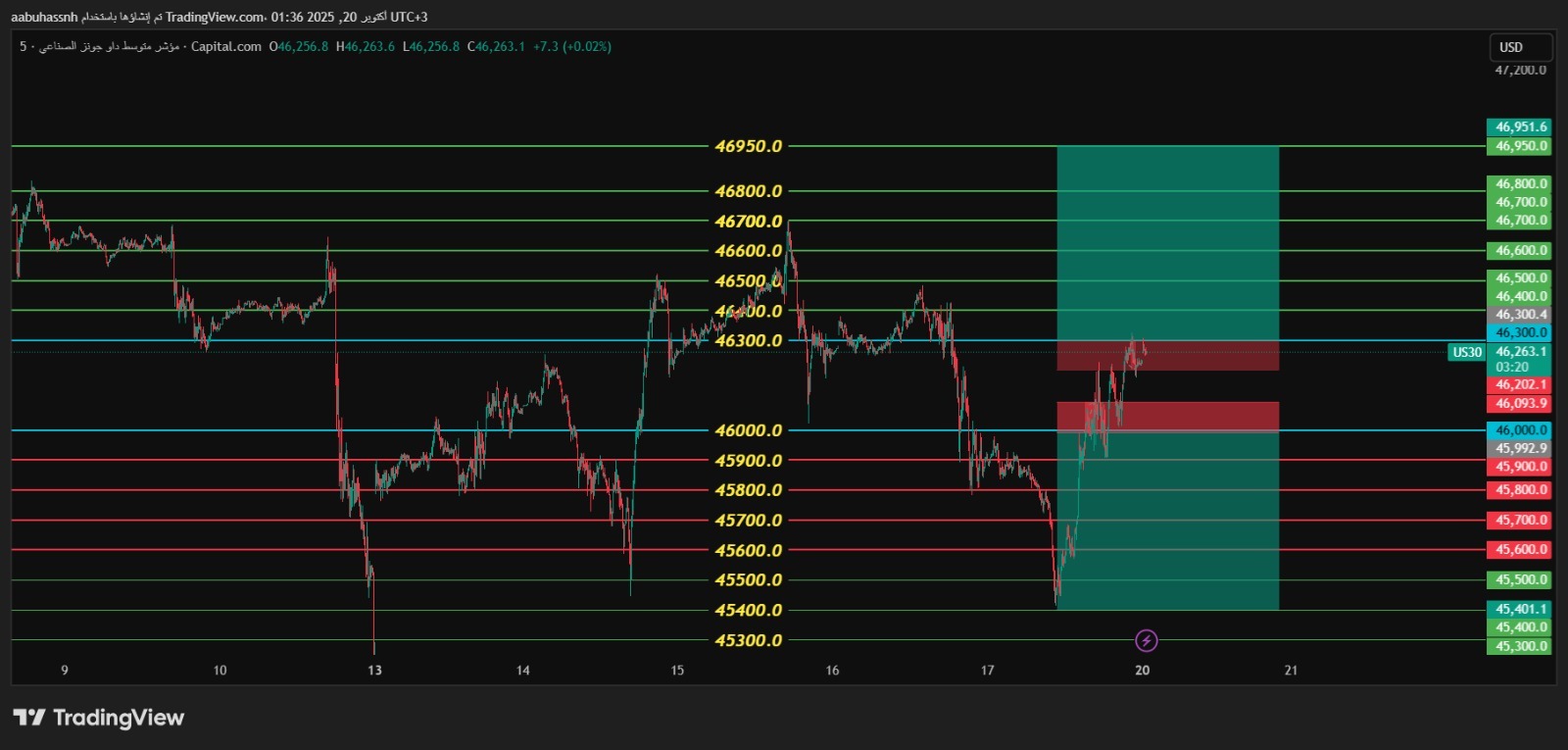 forex تحليل الداو جونز Dowjones 📊 تحليل مؤشر الداو جونز | 20 أكتوبر 2025 الاتجاه العام: صاعد 📈 🔹 سيناريو الصعود:يتم تفعيل الشراء باختراق مستوى 46300،والأهداف المتتالية عند المستويات التالية:46400 – 46500 – 46600 – 46700 – 46800🔸 منطقة 46950 تعتبر منطقة مهمة للمراقبة لاحتمال حدوث جني أرباح أو انعكاس جزئي منها. 🔹 سيناريو الهبوط:يتم تفعيل البيع بكسر مستوى 46000،والأهداف المحتملة عند:45900 – 45800 – 45700 – 45600 – 45500 – 45400 – 45300 – 45200 💡 نصيحة فنية:راقب حركة السعر عند 46300 و46000 بدقة، فكسر أو اختراق أي منهما قد يحدد الاتجاه القادم بقوة. Related Posts forex تحليل النفط تحليل النفط الخام (Oil Analysis) الاتجاه العام: هابط... forex تحليل مؤشر الناسداك – Nasdaq 100 📊 تحديث تفصيلي لمؤشر ناسداك (NASDAQ) الاتجاه العام...